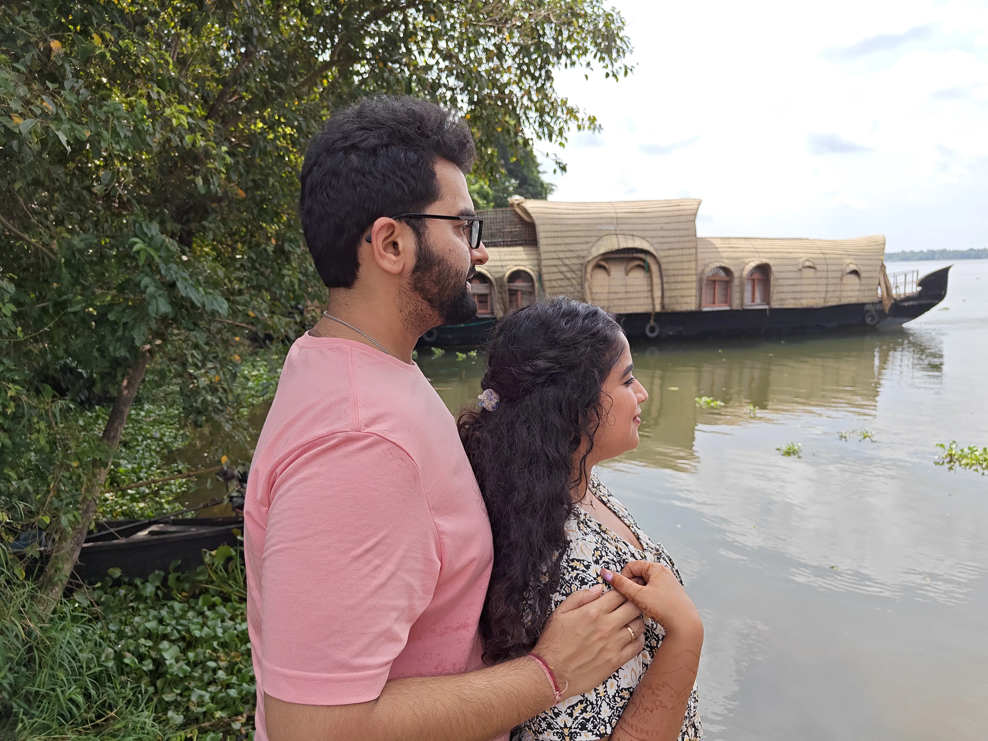 During sunset, the sky turned gold, and the water caught every colour like a mirror. The couple stood on the deck in silence.